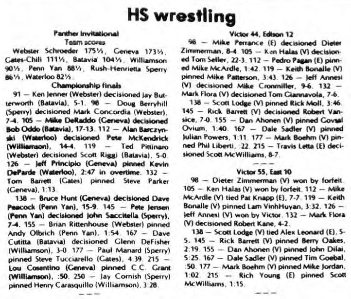 Pedro Pagan (ETR) > Mike McArdle (Victor) fall 1:42