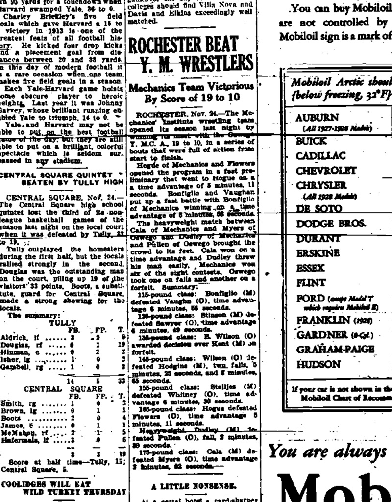 Oswego YMCA vs. Rochester Athenaeum and Mechanics Institute