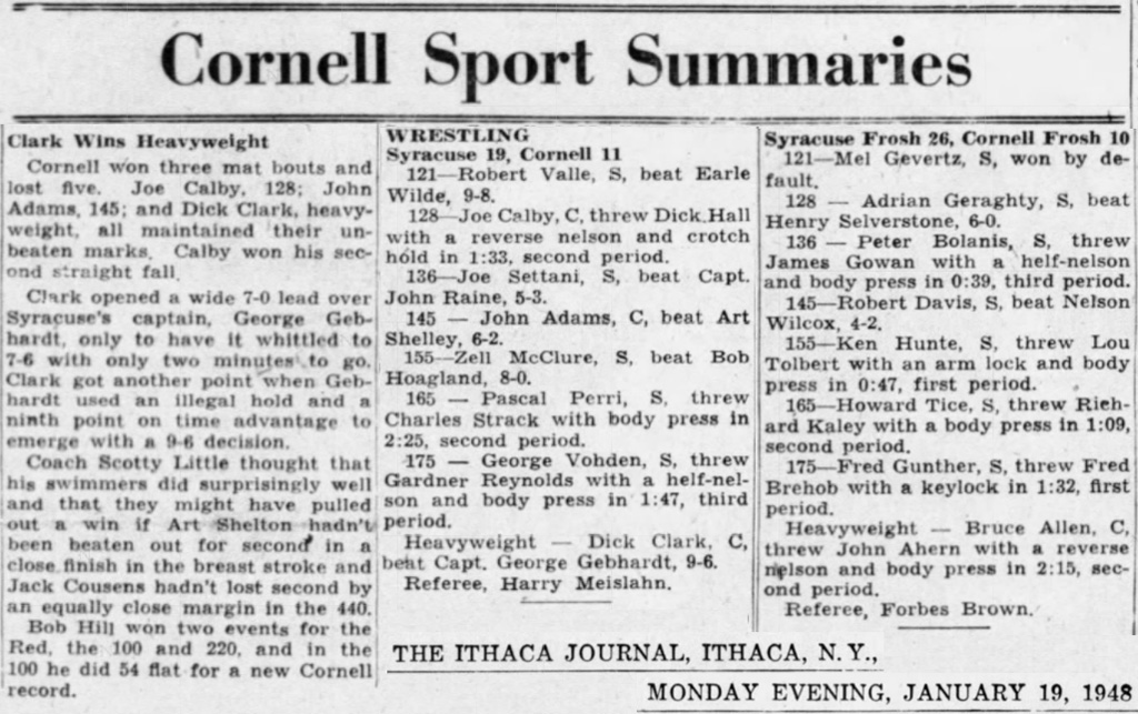 128 Joseph Calby (CU) > Dick Hall (SU) fall 4:33