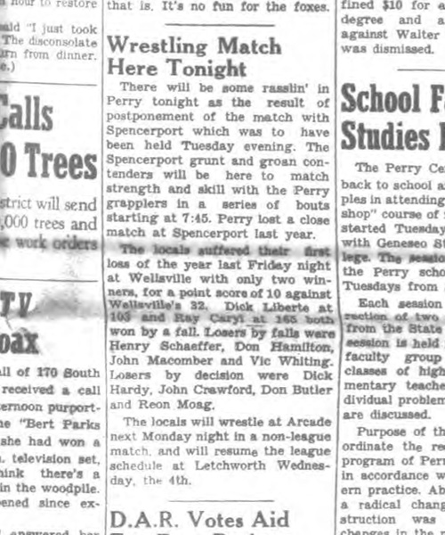 Arcade proved easier Monday night when the locals went over there to pile up a 34 to 10 victory. SOURCE: Perry Record, Thursday, February 5, 1953.