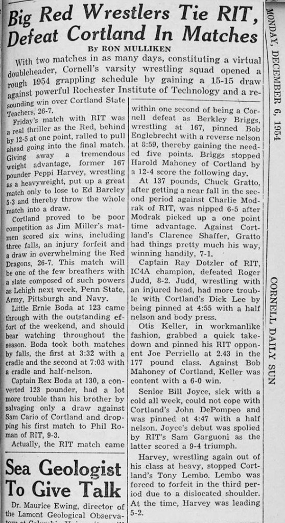 Dick Vincent (CU) > Hans Dotzler (RIT) fall 7:00