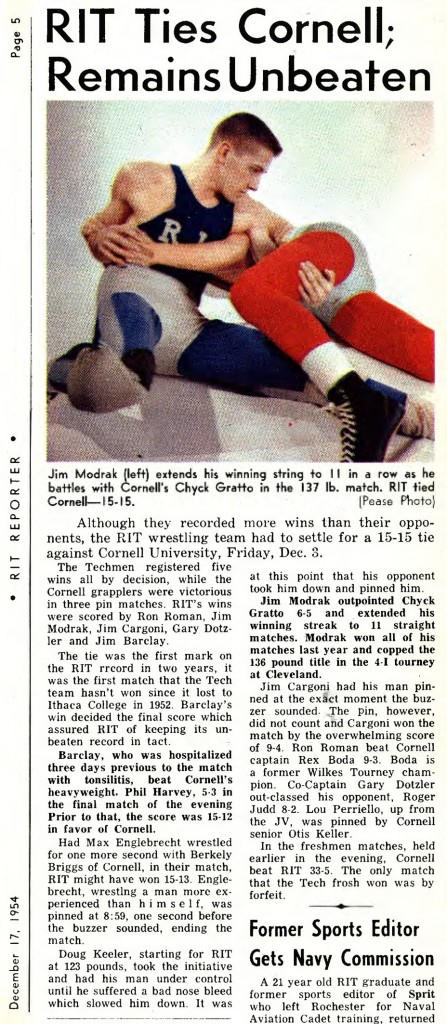 Jim Modrak (RIT) > Chuck Gratto (CU) decision 6-5