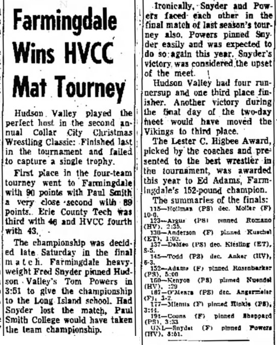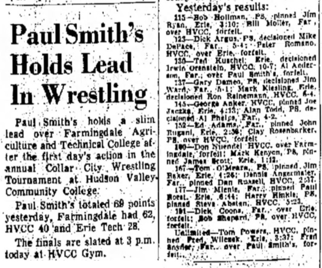 123 Dick Argus (PSC) > Peter Romano (HVCC) fall 2:35