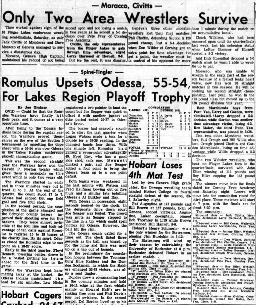 Jack Civitts (Mynderse) > Larry Harwood (Hornell) decision 9-8