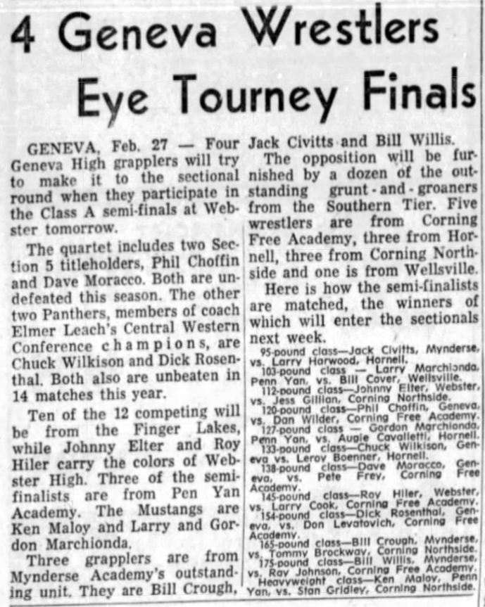 Leroy Boerner (Hornell) > Charlie Wilkison (Geneva) decision 5-2
