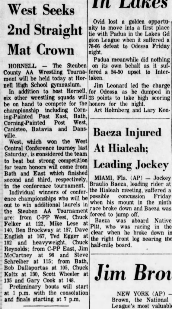 154 Dick Wheat (BH) > Mike Palmer (Batavia) decision 1-0
