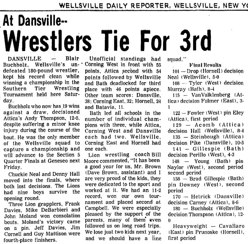 Blair Buchholz (Wellsville) > Andy Thompson (Attica) decision 12-0