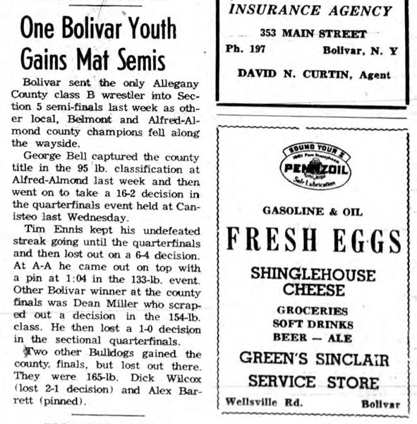 Tom Makitra (Canisteo) > Tim Ennis (Bolivar) decision 6-4