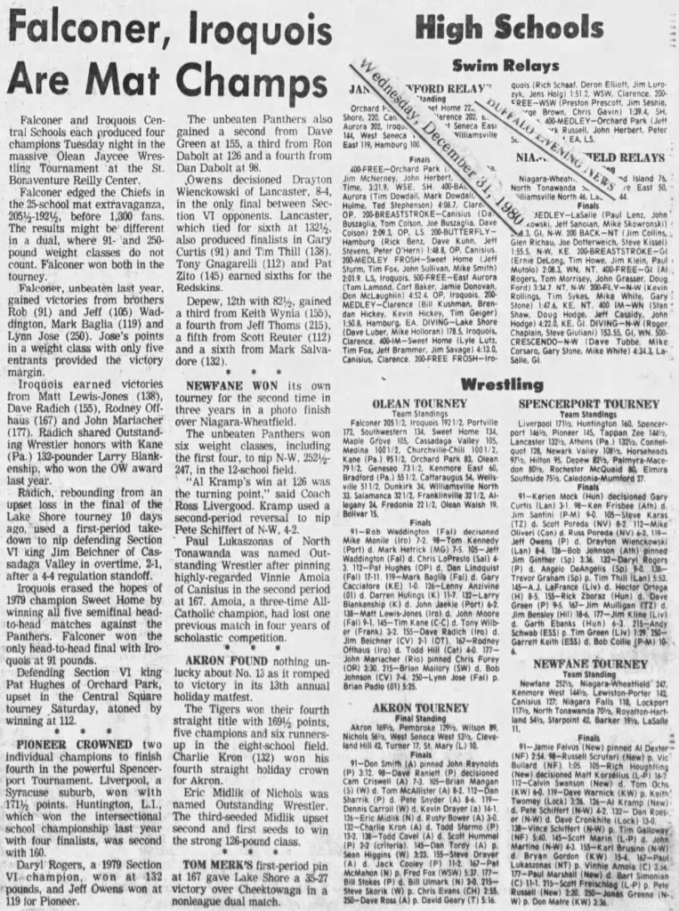 Calvin Swanson (Newfane) > Tom Ochs (KW) decision 6-0