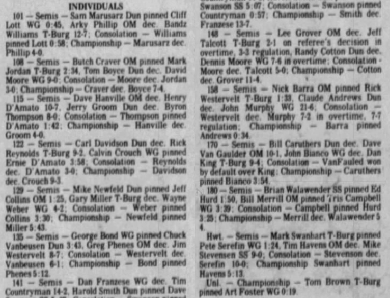 132 Jim Westervelt (SS) > Chuck VanHuesen (Dundee) decision 6-1