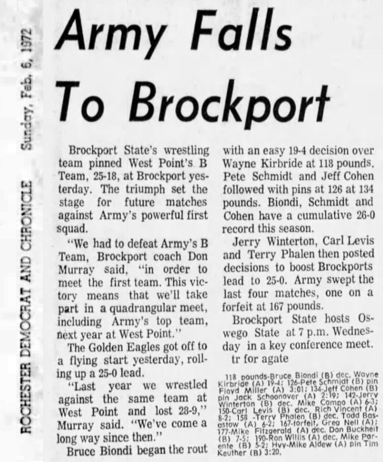 Bruce Biondi (Brockport) > Wayne Kirbride (USMA) decision 19-4