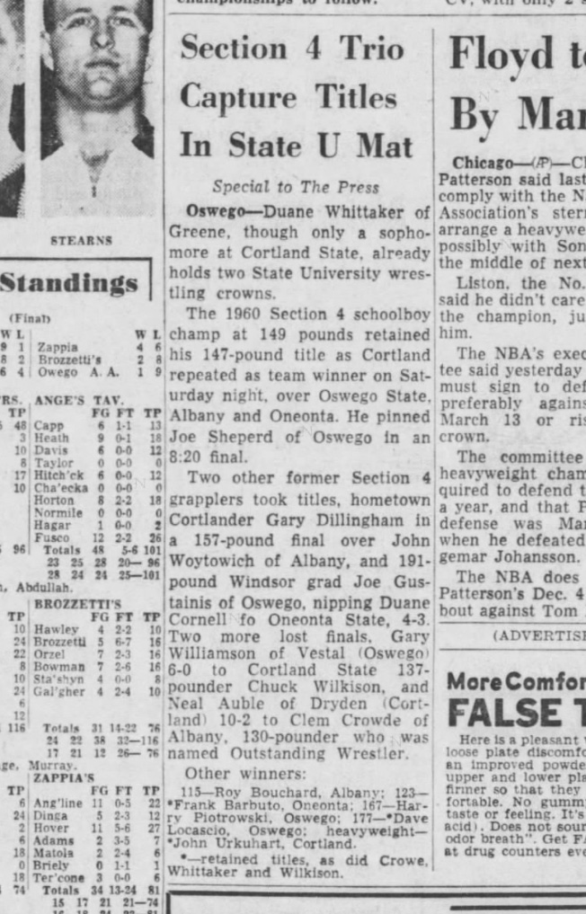Duane Whittaker (Cortland) > Joe Shepard (Oswego) fall