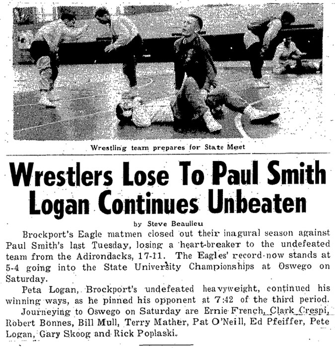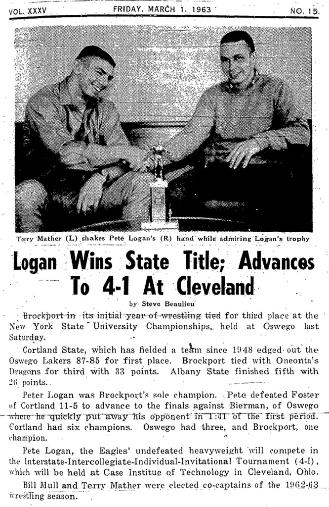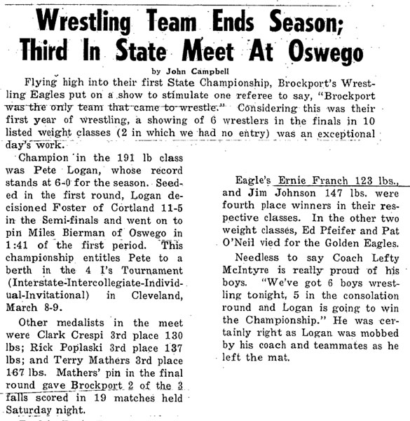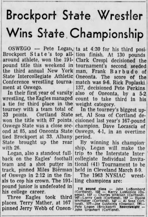 Pete Logan (Brockport) > Miles Bierman (Oswego) fall 2:42