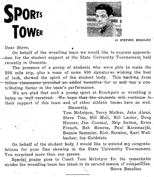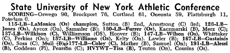 Jerry LaMonica (Oswego) > Skip Sutton (Brockport) decision 4-2