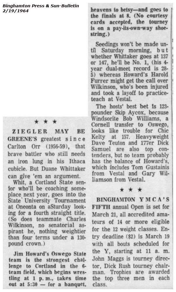 William Wilson (Oswego) > Duane Whittaker (Cortland) decision 5-4