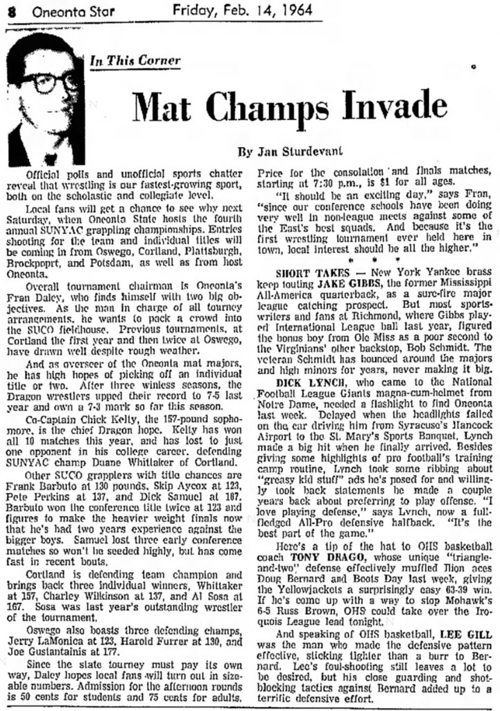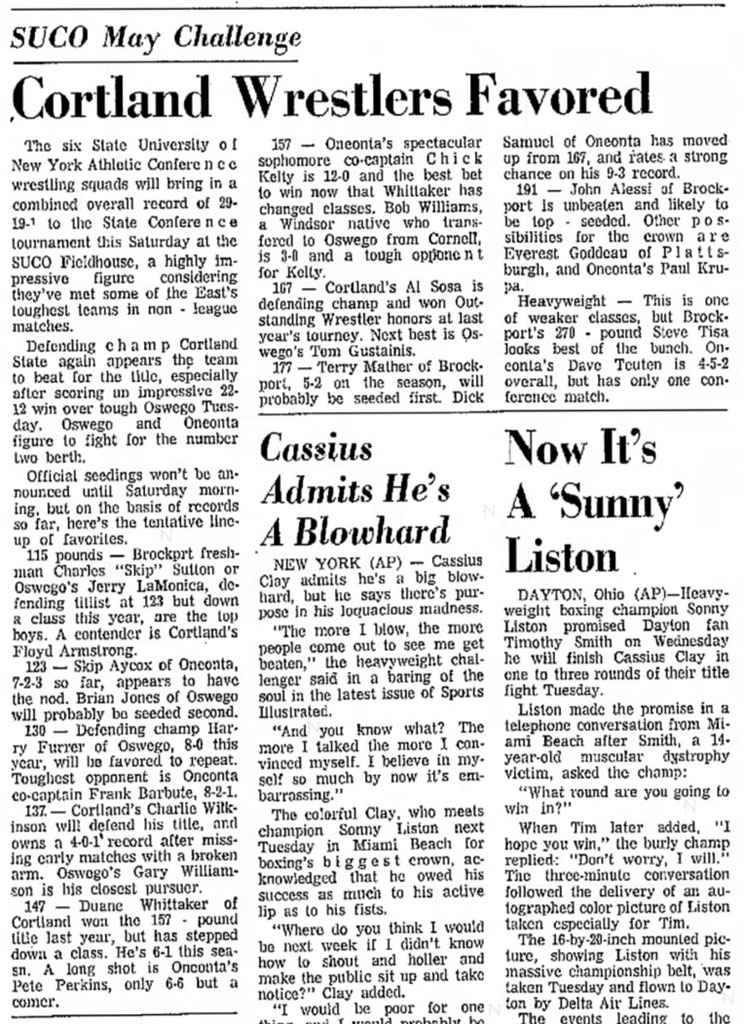 Roy Pierson (Cortland) > Paul Krupa (Oneonta) fall 5:55