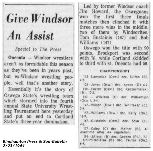 Dick Samuel (Oneonta) > Dick LaCombe (Oswego) decision 3-1