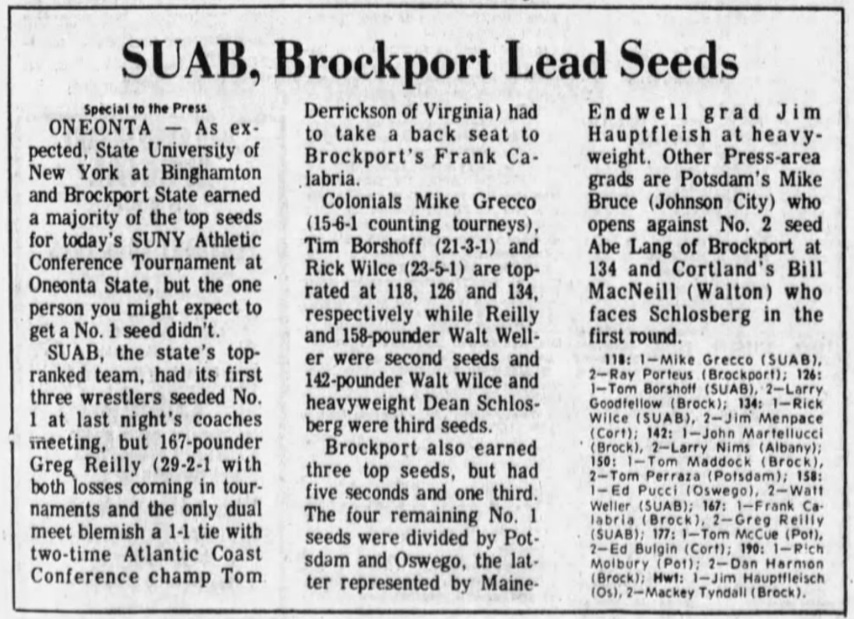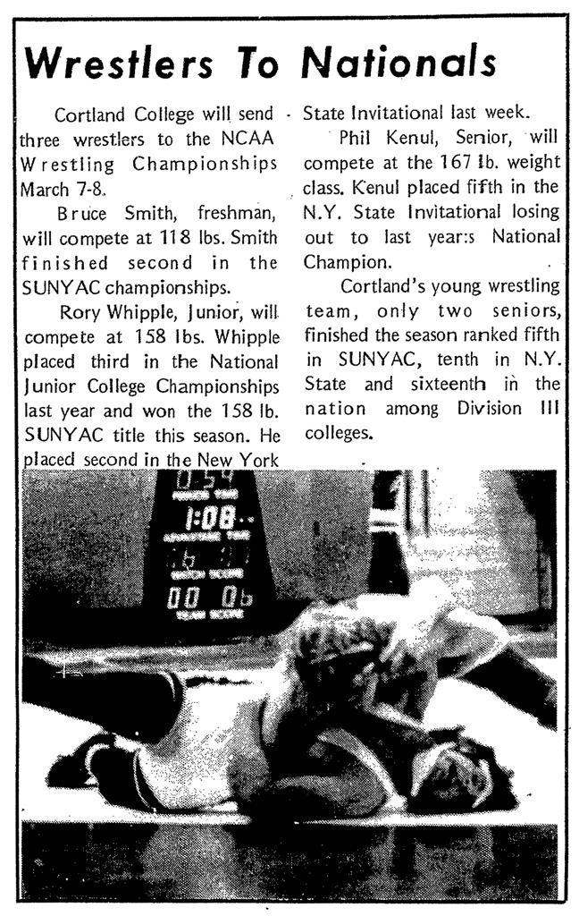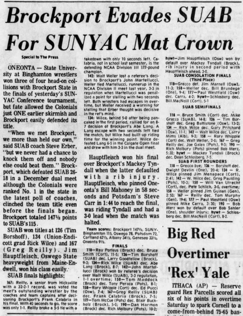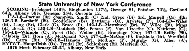 Ray Porteus (Brockport) > Bruce Smith (Cortland) decision 11-5