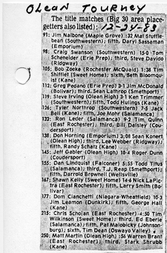 Jeff Gabler (Olean) > Roger Dunn (Coudersport) decision 10-4