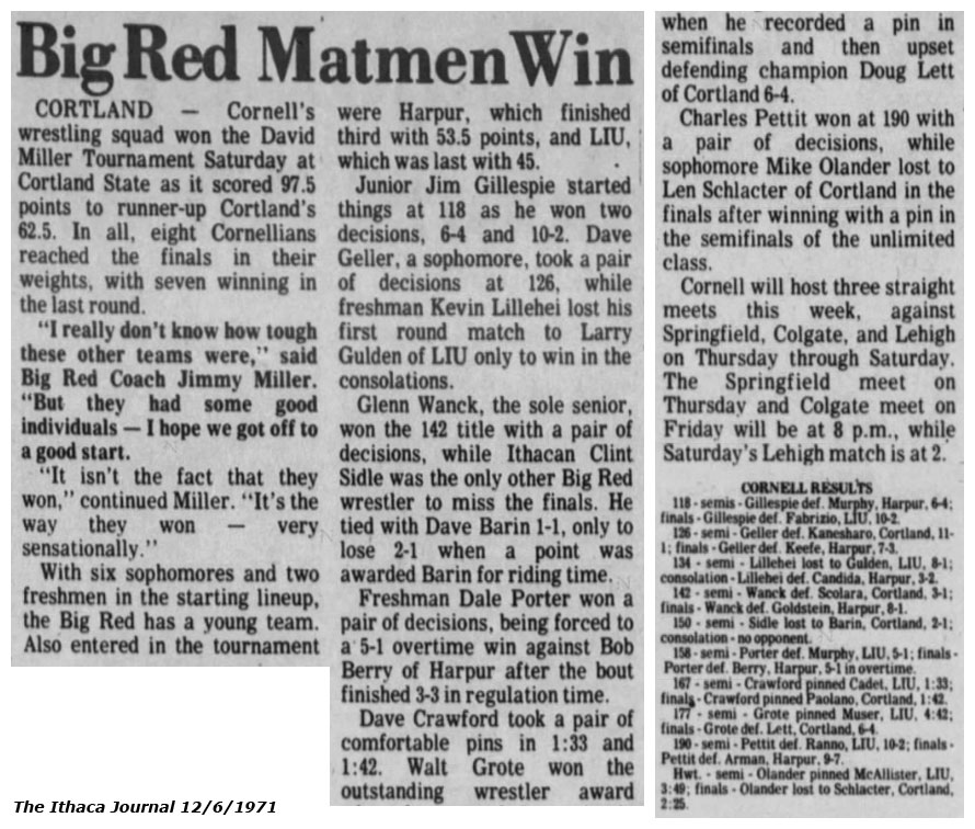 Walt Grote (CU) > Bill Lett (Cortland) decision 6-4