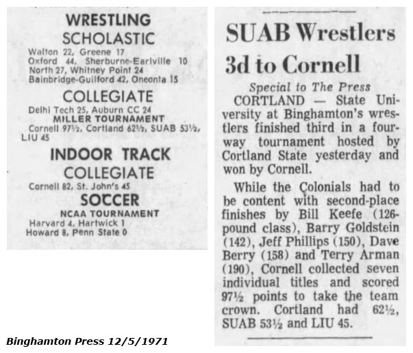 Bob DaRin (Cortland) > Jeff Phillips (BU) fall 4:32