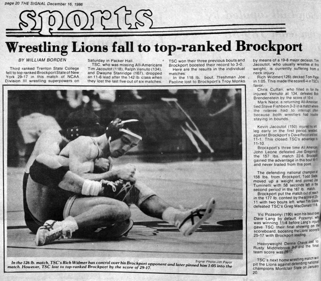 Dave Recor (Brockport) > Kevin Jacoutot (TCNJ (Trenton State)) major decision 11-1